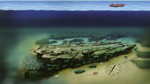basáltica de forma rectangular de unos 60 x 165 mts. rodeada de un arenal