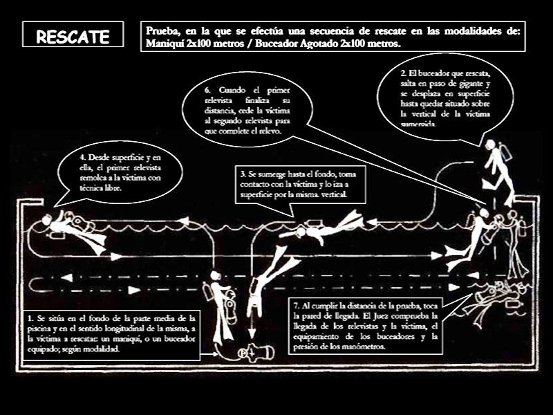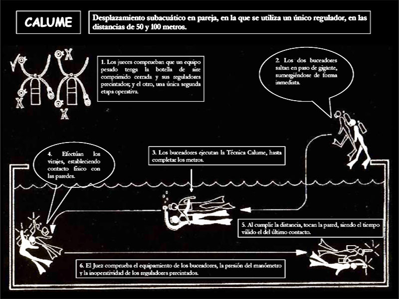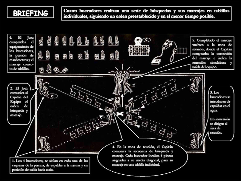 | Por este motivo, y como resultado de esta necesidad, en España desde los finales de los años 90 se ha introducido, desde la base federativa, la competición en el buceo con escafandra autónoma | ![]() |
