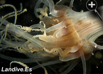 Se alimenta paralizando pequeñas presas gracias a los nematocistos de