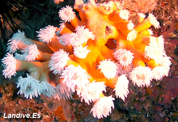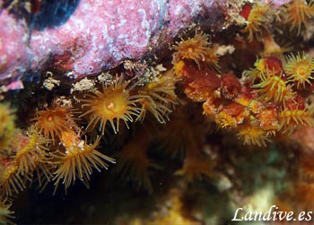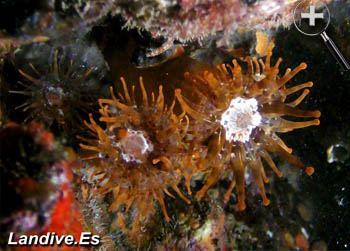 Anémona de pequeño tamaño que habita en cuevas y en laterales de