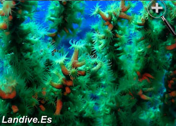 Asi como en el Mediterraneo es dificil ver colonias de este coral a