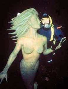 conocidas esculturas de las sirenas de bronce subacuáticas en lugares de