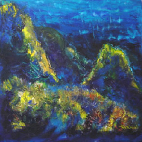 pintando algunas obras (con óleos) mientras bucea, y otras inspiradas