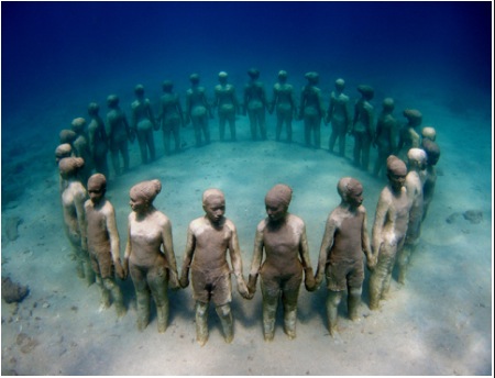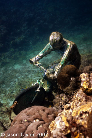 En mayo de 2006 obtuvo el reconocimiento internacional por crear el primer parque de esculturas submarinas en Grenada, Indias Occidentales. Sus esculturas submarinas estan diseñadas para crear arrecifes artificiales para la vida marina y servir de habitad para las especies e integrarse con las transformaciones provocadas por los procesos ecológicos. Realiza las obras con una visión de las posibilidades de un futuro sostenible, que representan la intervención humana como positiva y afirmativa. Basándose en la tradición figurativa de la imagen, el objetivo de Jason de Caires Taylor es el trabajo para hacer frente a una amplia audiencia crucial para poner de relieve las cuestiones medioambientales más allá de los confines del mundo del arte. Sin embargo, fundamental para comprender su trabajo es que encarna la esperanza y el optimismo de una regeneración, la naturaleza transformadora.