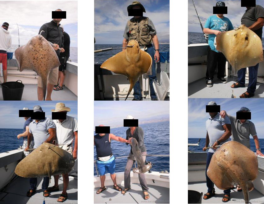 Que habiéndose constatado de forma reiterada la captura indiscriminada por parte de embarcaciones dedicadas a la pesca recreativa colectiva (lista 6ª) de especies de alto valor ecológico, como es el caso del tiburón ángel o angelote (Squatina squatina), cuya pesca, o tenencia a bordo está prohibida en aguas de la Unión Europea, incluyendo Canarias (artículo 12 del Reglamento (UE) Nº 40/2013 del Consejo de 21 de enero de 2013). Estas embarcaciones, según el Reglamento de la Ley de pesca de Canarias (Decreto 182/2004 de 21 de diciembre) requieren una licencia de primera clase de carácter colectivo, la cual sólo las posibilita a la pesca de recreo utilizando el curricán de superficie. No obstante, algunas de estas embarcaciones dedicada a la pesca con turistas están dirigiendo su actividad a la obtención de especies bento-demersales, por ser éstas más fácilmente capturables, entre las que destacan principalmente tiburones ángel, chuchos (Dasyatis pastinaca, D. centroura, Taeniura grabata), ratones (Myliobatis aquila), mantelinas (Gymnura altavela), rayas (Raja brachyura) torpedos (Torpedo marmoratza), así como pequeños tiburones (Ej., Mustelus mustelus). En muchos casos, estas especies, una vez subidas a bordo, son muertas, para mayor seguridad de los turistas, y posteriormente arrojados al mar tras obtener la correspondiente foto de souvenir (se adjuntan algunas fotos de ejemplo en un anexo). Todas estas especies tienen un valor ecológico muy relevante en los ecosistemas marinos, ya que ocupan los niveles tróficos más altos de las cadenas tróficas. Pero, además, la mayoría de ellas tienen tasas de crecimiento muy bajas y niveles de fecundidad reducido, con lo que una pesca excesiva e indiscriminada puede provocar la sobreexplotación de estas especies y desequilibrios ecológicos difícilmente cuantificables (Ej.: proliferaciones masivas de erizos). La gran mayorías de estas especies se encuentran catalogadas como altamente vulnerables o en peligro crítico de extinción por parte de la IUCN (Unión Internacional para la Conservación de la Naturaleza), y a nivel mundial se estima que la biomasa actualmente existente es menor al 10% de la registrada en la década de 1950 (Myer y Worm, 2003).